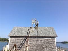 What a day we had - the weather was beautiful but hot and we accomplished so much! You can see all the different birds we saw at the compound as well as on a boat trip around the island. The food is the best ever and there is so much to learn. I was part of a crew of six that build a new osprey structure on top of a boat house on the mainland. There will be a cam attached to it soon and we will all be able to enjoy watching the nesting ospreys who I'm sure will take advantage of it! Tonight Steve Kress gave a talk on the Puffin Project and afterward did a book signing. If you would like to get his book they are available here at Hog Island and that way all the proceeds go to the project and they will mail it free.