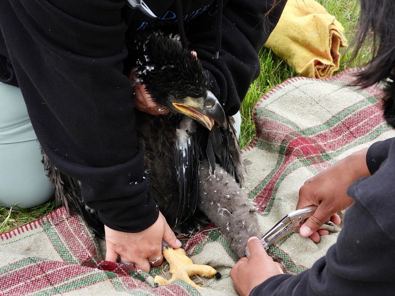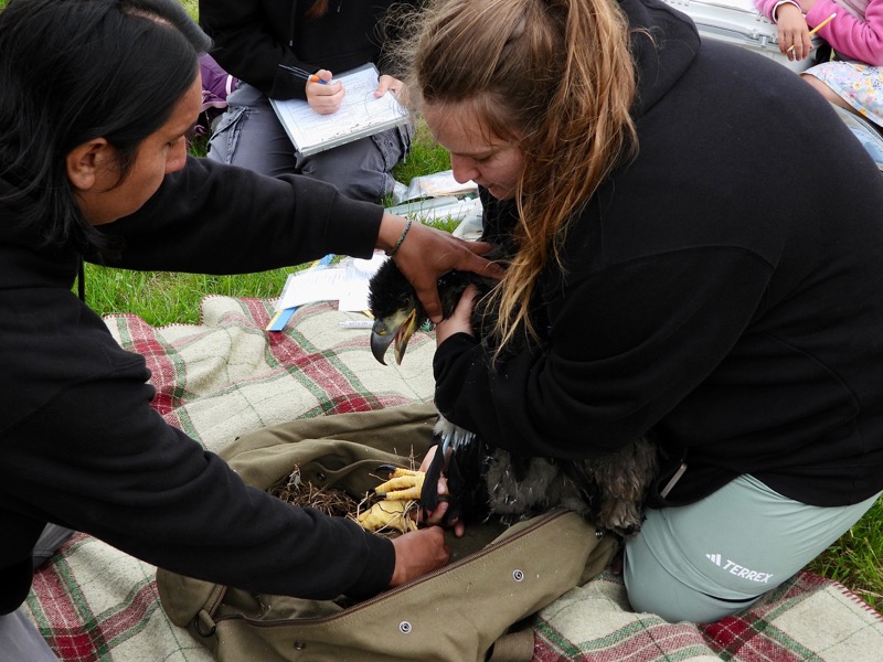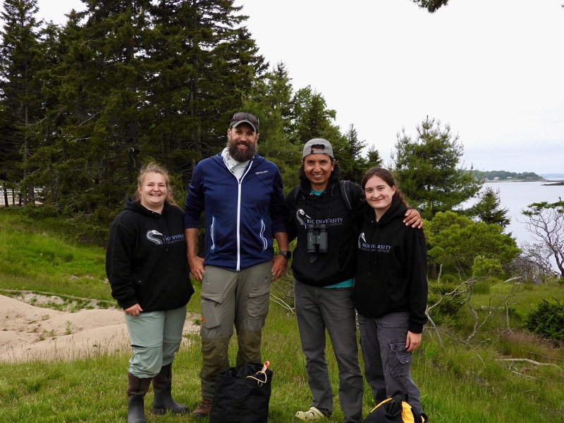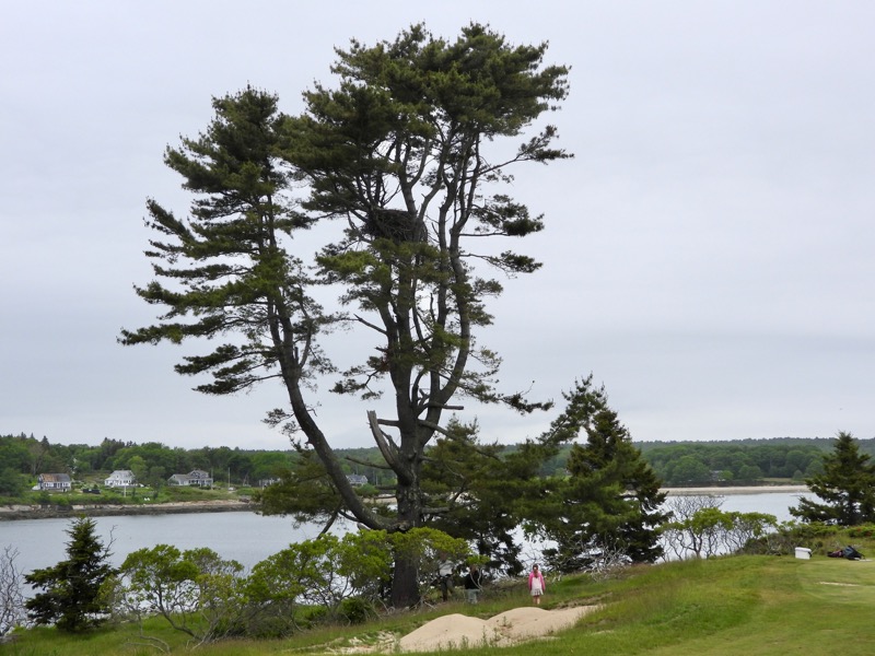 Message from Krista Hayward along with lots of her photos!!!In early June, I was invited to go with the research team from Biodiversity Research Institute to visit Hope Island and collect data & samples, and observe the banding of the Bald Eagle chick. I’d been in touch with them over the spring, reporting observations from Chebeague, which included an estimated hatch date. Upon our arrival on Hope, both Bald Eagle parents were present and though they showed concern with our presence, they were not aggressive. They flew to neighboring trees, made some noise and did some fly-by’s during the observation period to check in. After climbing the tree, Chris DeSorbo, the Director of the Raptor Program, places the eaglet in a canvas bag and gently lowers it to the ground. In addition to banding it (could not determine visually whether a male or female), they took a fecal & blood sample, a feather sample, some measurements along with its weight, and will run tests for lead and mercury contamination. They estimated it to be about 6.5 weeks old, weighing a solid 9 pounds! We had the eaglet out of the nest for about 30 minutes and not long after it was returned, both parents came back. Being at the top of the food chain, eagle research gives a lot of insight as to the health of the local environment. It also helps frame future conservation work and environmental laws. More information can be found on their website, www.briwildlife.org. I will get test results later in the fall-if anyone is interested in seeing them, they can email me. |