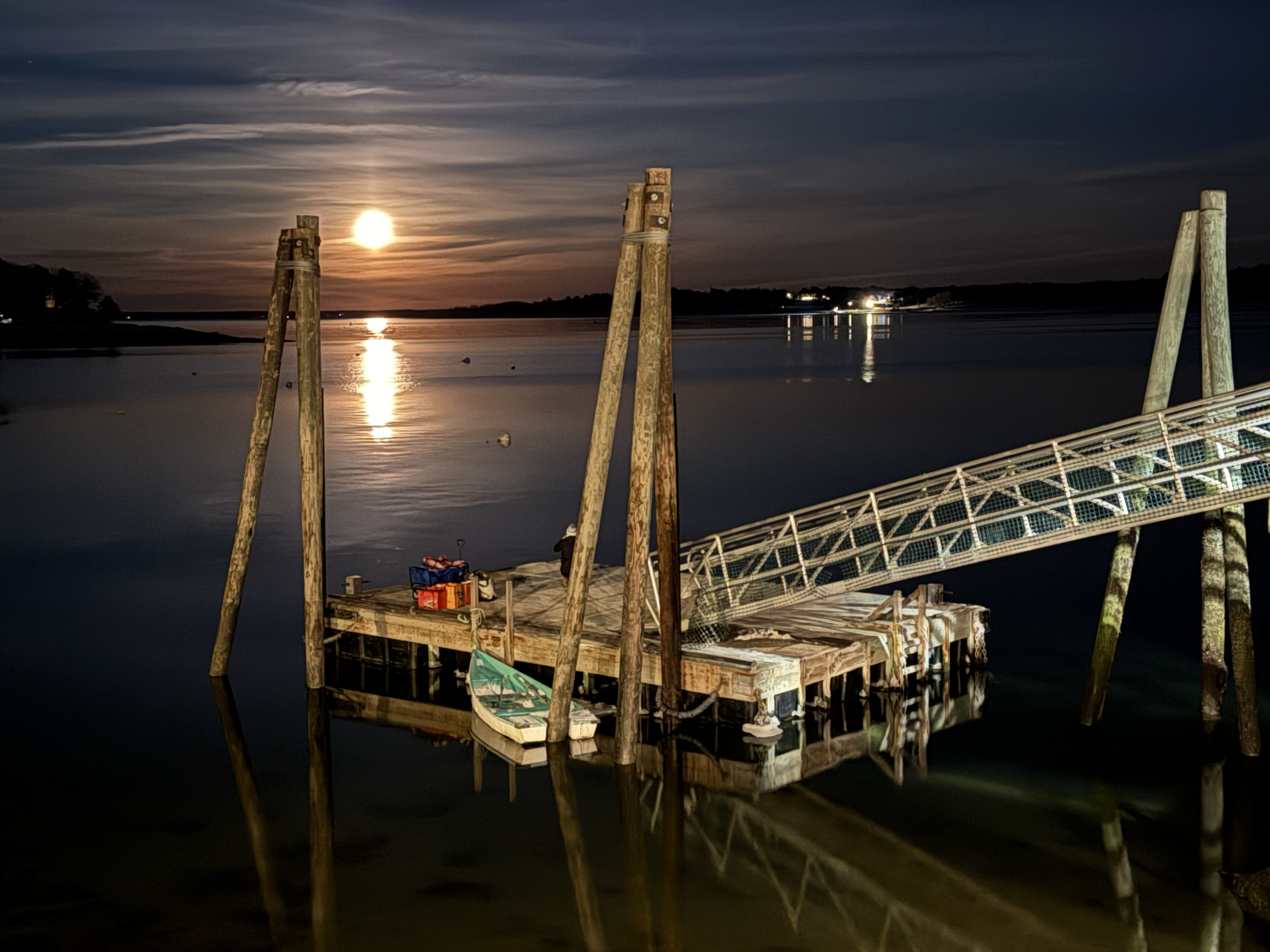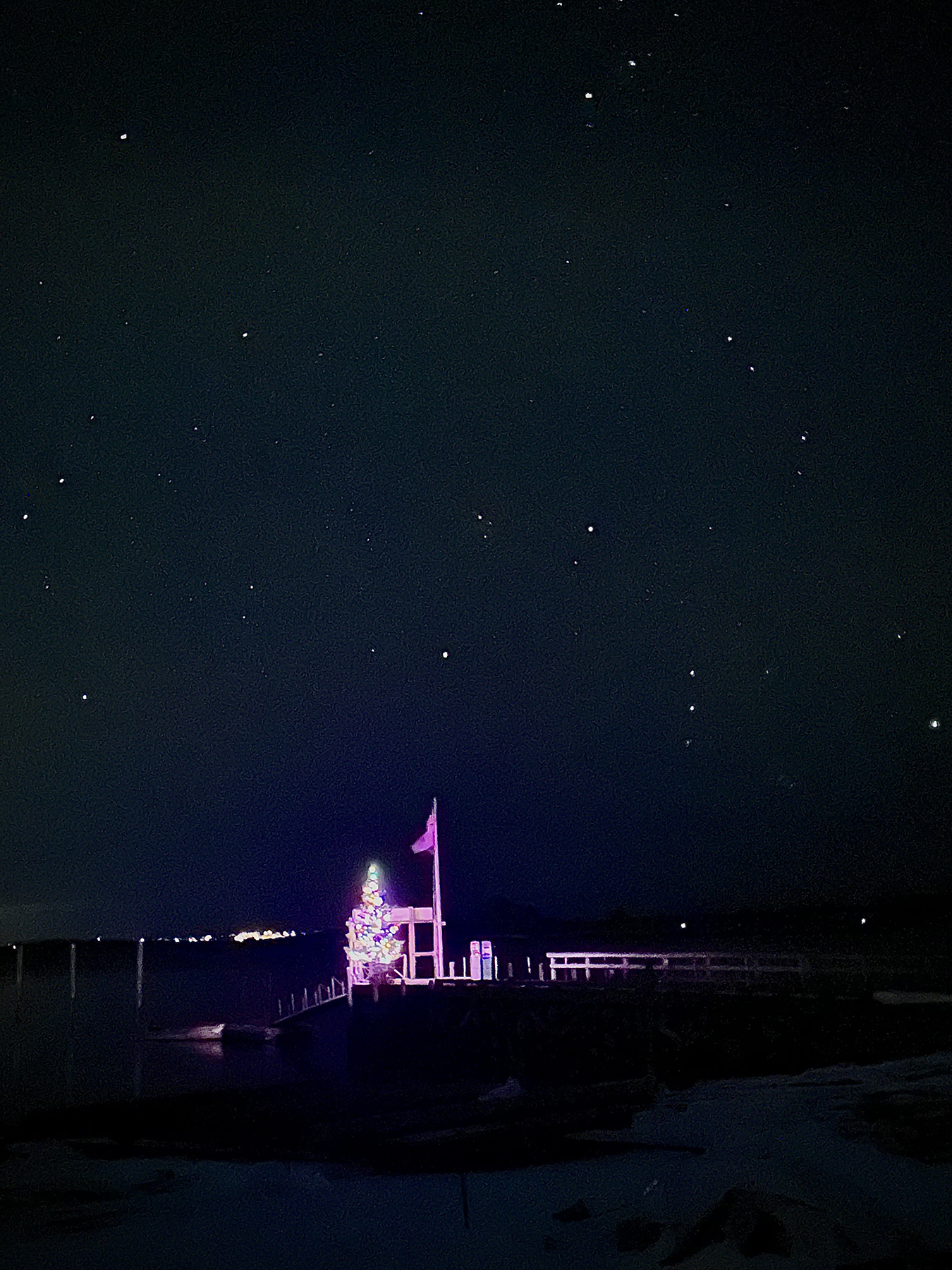 November 11, 2025 - photo - by Teddy Houghton November 11 Northern Lights looking down toward stone wharf.
