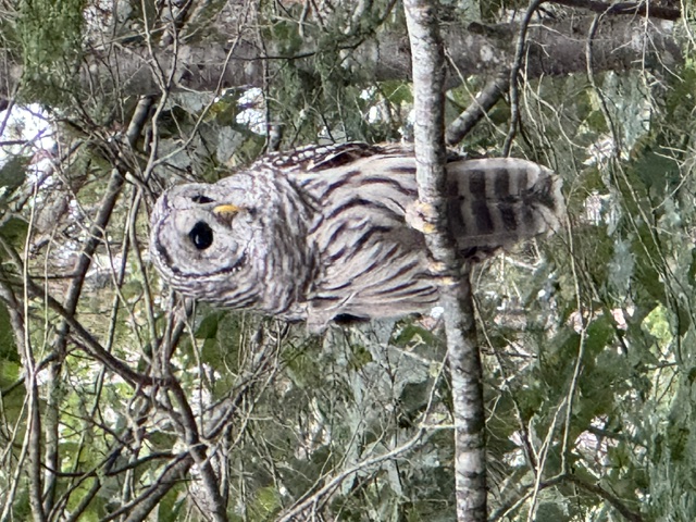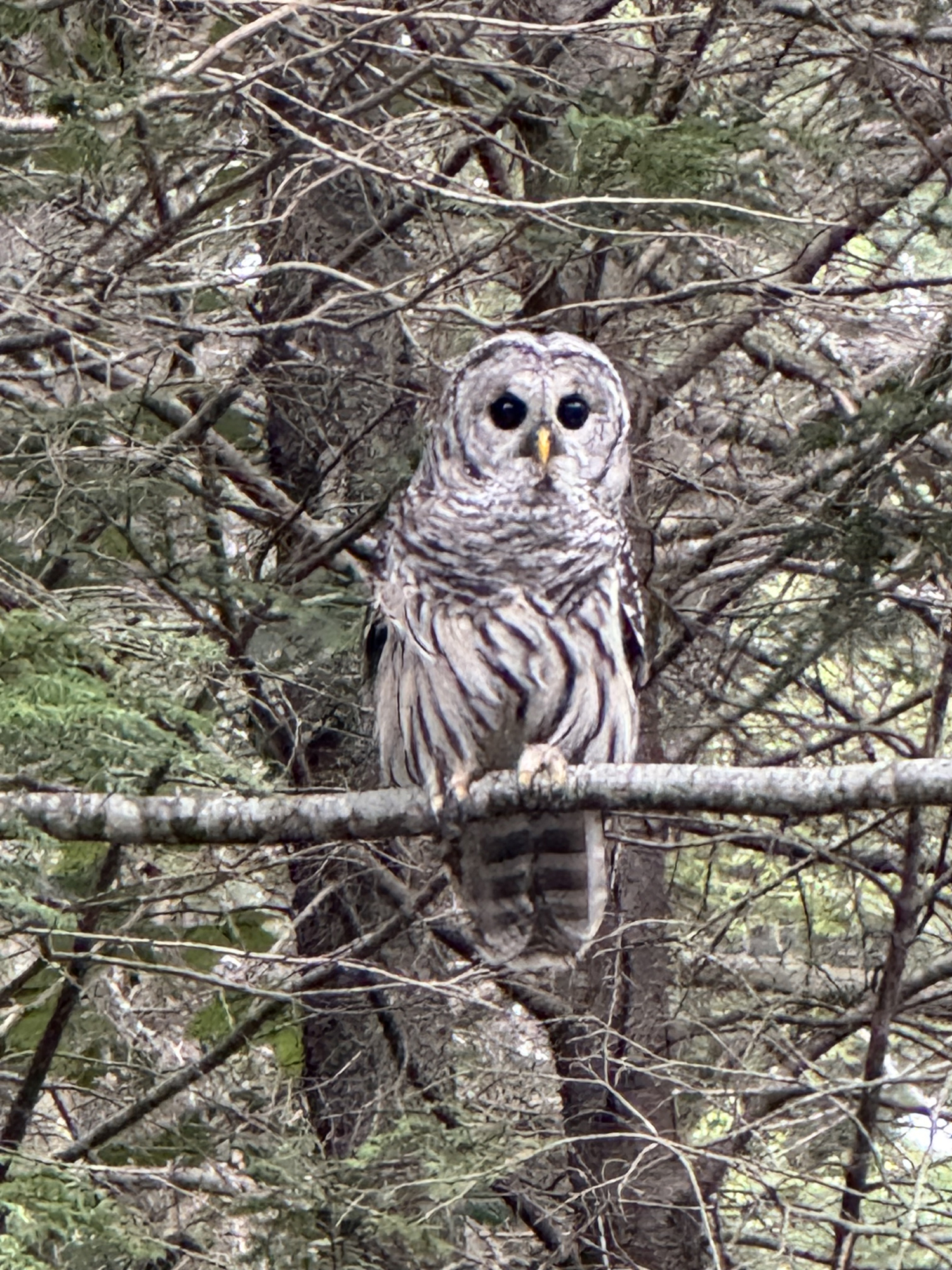 August 20, 2025 - photo - of a barred owl by Jon Rich on Division Point Road on August 20th. Click here to see another view - click here to see a movie.