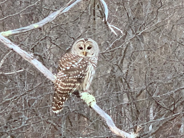 December 3, 2025 - Click here for a photo of a Barred Owl taken by Andrea Ballard on Cottage Road yesterday.