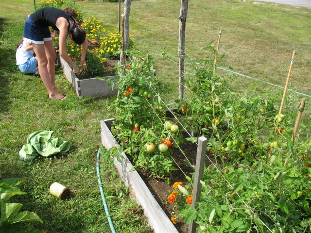 garden with Evan and Noah Boisvert, Cassidy Jeffers, Chloe and