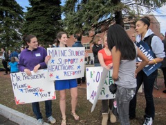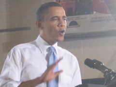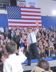 Chebeague was well represented today in Organizing for America's volunteer efforts during the President's visit. Carol White was a ticket taker, Ginny Ballard herded hundreds of attendees into assigned standing space, Anna and Julia Maine, John and Mary Holt worked with the Outside Team. We were only 30 feet away from President Obama as he addressed the crowd. The President worked his way through the crowd and shook Julia's hand on his way out of the Expo.