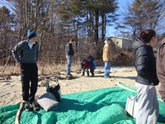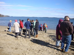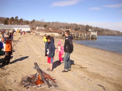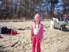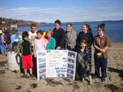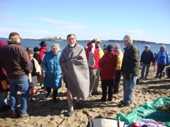 February 21, 2010 - It was about 40 degrees with lots of wind and we figure the water temp to be about 37 degrees. Twelfth Year of doing the Polar Plunge to benefit the CRC Teen Center Operation. Plungers this year were Peter Carleton, Bob Prescott, Bob Earnest, Timmy Calder, Lydia Wright (6 years), Orson Wright, Seth Prescott, Bev Johnson and Anna Maine.