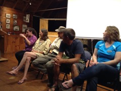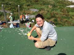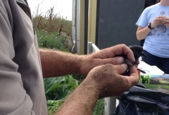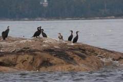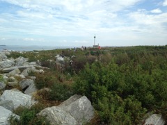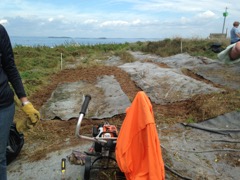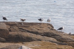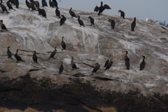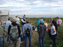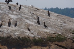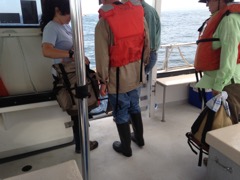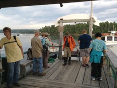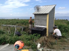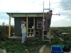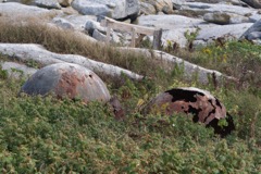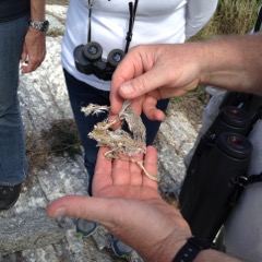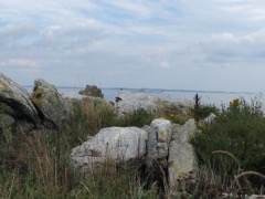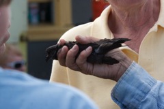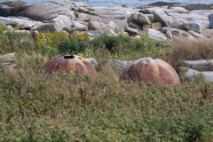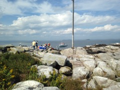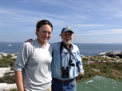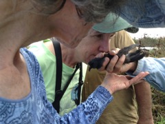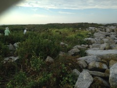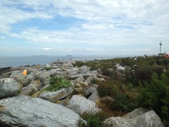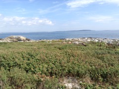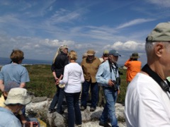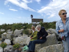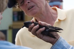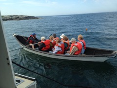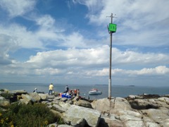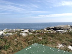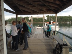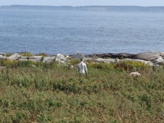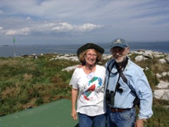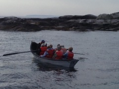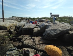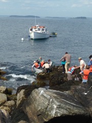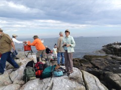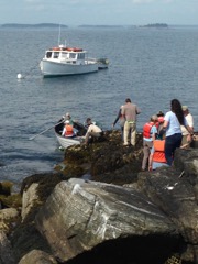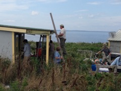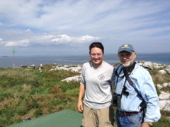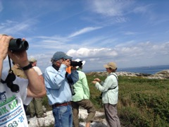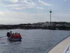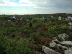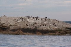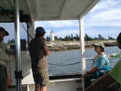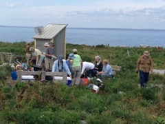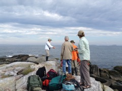 Today we traveled 8 miles out to Eastern Egg Rock Eastern which is owned by the Maine Dept. of Inland Fisheries and Wildlife and is managed by National Audubon Society through a cooperative agreement. There we worked on various projects around the island that has been so famous in Maine where Dr. Stephen Kress was able to reintroduce the Puffins back to the island along with terns and laughing gulls. Many of us pulled invasive plants and you can see in the photos what a change it made pulling the yellow invasive radish plant. Some people worked on the tern nesting carpets, repairs and painting of the "Hilton" and the outhouse were done and of course there was trash cleanup from debris that comes ashore from the ocean. It was hot and beautiful on the island and we all worked hard. After lunch we had a special treat of being able to see a Leach's Storm Petrel up close and learn about him from Dr. Kress - click here to see the video I took. In the evening we had a presentation from one of the interns who had spent 18 days on Egg Rock and then met others who had been interns and asked them questions. When I get a chance I plan on labeling lots of the photos but right now we are too busy. We also have mystery of the day where you try to answer questions - there is a prize for the one who answers all the questions this week the best. Below is a video of Dr. Kress telling us a little about Eastern Egg Rock just after we landed. At the end of the day I did a scan from the top of the cabin looking around the whole island. |