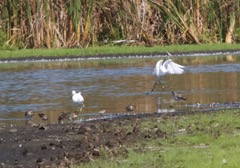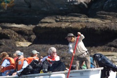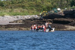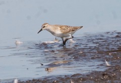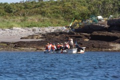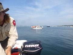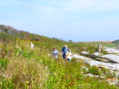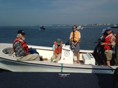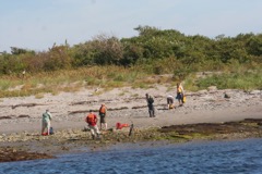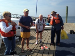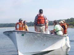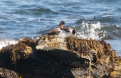 Today we left Hog Island around 7:30 and traveled to the mainland for a two hour drive south to get a boat to Stratton Island that is one of Audubon's Seabird Islands. There we worked on invasive plant removal and repairs to the shed. We saw lots of birds today including four Oyster Catchers, Gannett and a rare for this area Lark Sparrow. It was the first time for me to see a Shoveler. I'm including photos that are not great but show some of the birds we saw today. In the evening we were treated to a talk by Dr. Kevin McGowan on the interesting lives of seabirds. Kevin is the instructor for the Cornell Lab of Ornithology's Home Study Course in Bird Biology and a new online short-course, "Courtship and Rivalry in Birds. |