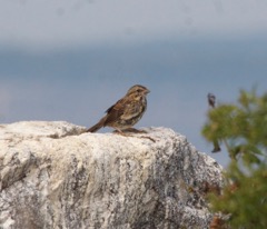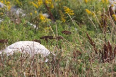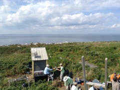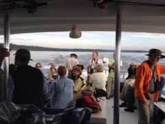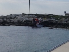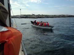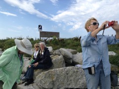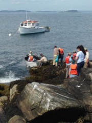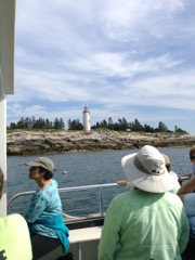 Today we traveled 8 miles out to Eastern Egg Rock Eastern which is owned by the Maine Dept. of Inland Fisheries and Wildlife and is managed by National Audubon Society through a cooperative agreement. There we worked on various projects around the island that has been so famous in Maine where Dr. Stephen Kress was able to reintroduce the Puffins back to the island along with terns and laughing gulls. Many of us pulled invasive plants and you can see in the photos what a change it made pulling the yellow invasive radish plant. Some people worked on the tern nesting carpets, repairs and painting of the "Hilton" and the outhouse were done and of course there was trash cleanup from debris that comes ashore from the ocean. It was hot and beautiful on the island and we all worked hard. After lunch we had a special treat of being able to see a Leach's Storm Petrel up close and learn about him from Dr. Kress - click here to see the video I took. In the evening we had a presentation from one of the interns who had spent 18 days on Egg Rock and then met others who had been interns and asked them questions. When I get a chance I plan on labeling lots of the photos but right now we are too busy. We also have mystery of the day where you try to answer questions - there is a prize for the one who answers all the questions this week the best. Below is a video of Dr. Kress telling us a little about Eastern Egg Rock just after we landed. At the end of the day I did a scan from the top of the cabin looking around the whole island. |