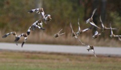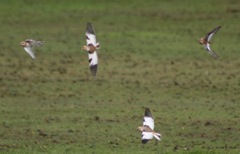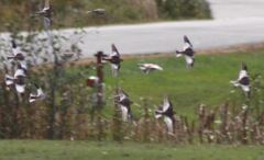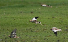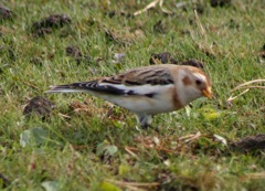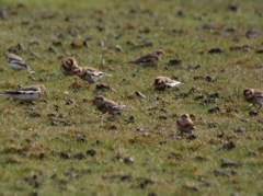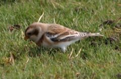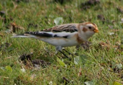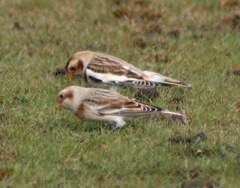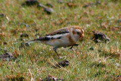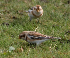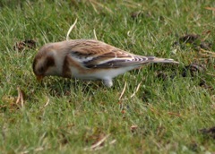 This "drift" of snow buntings arrived on Chebeague the same day as the first snow and I was able to photograph them as they traveled around the Golf Course have a great time feasting on the recently aerated fairways.