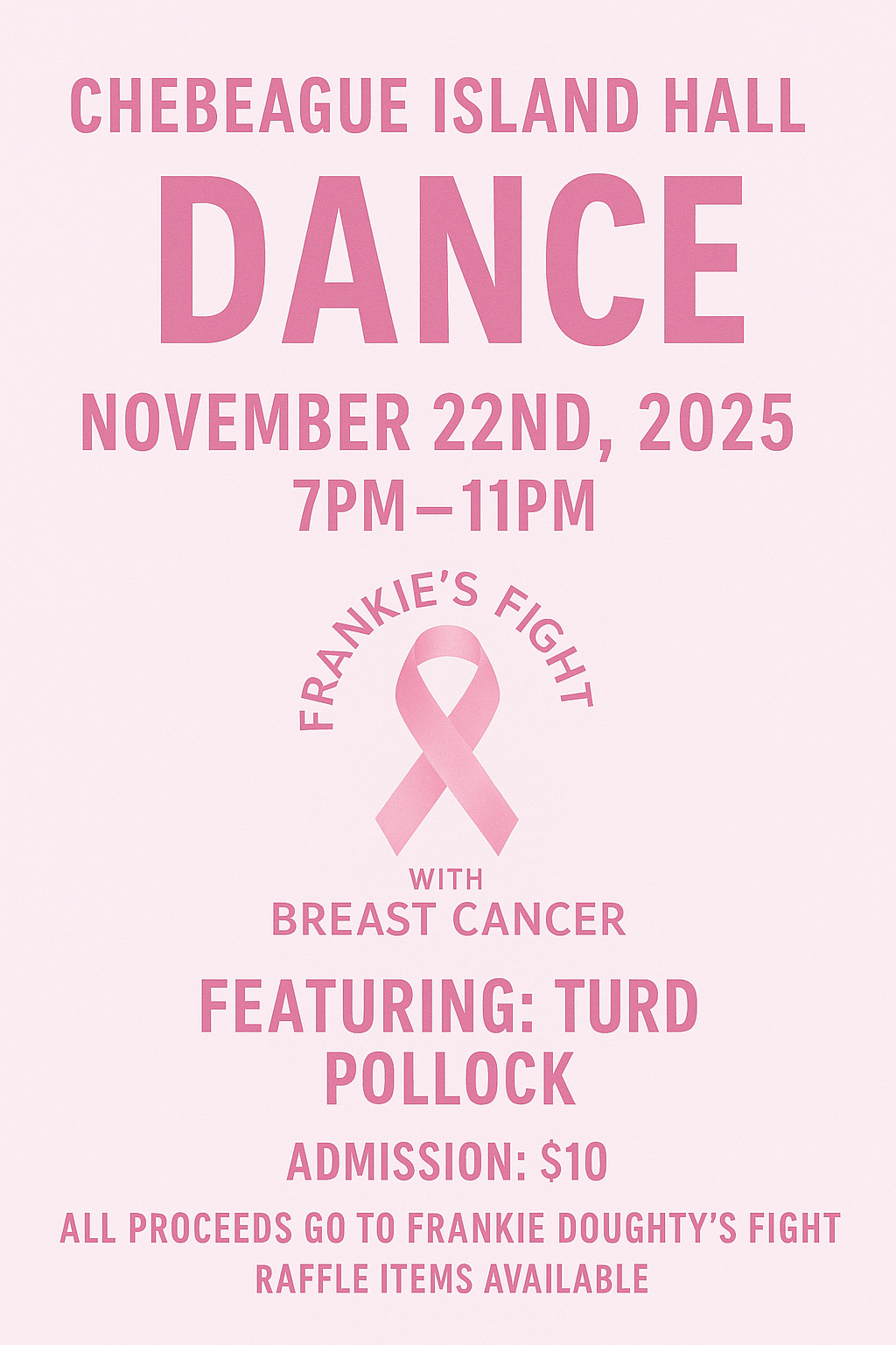October 21, 2025 - There will be a benefit dance on Saturday, November 22nd from 7 to 11 with Turd Polluck to fight Frankie's Fight of Breast Cancer! All proceeds from dance and raffles will go to help Frankie Doughty. Click here for flyer!