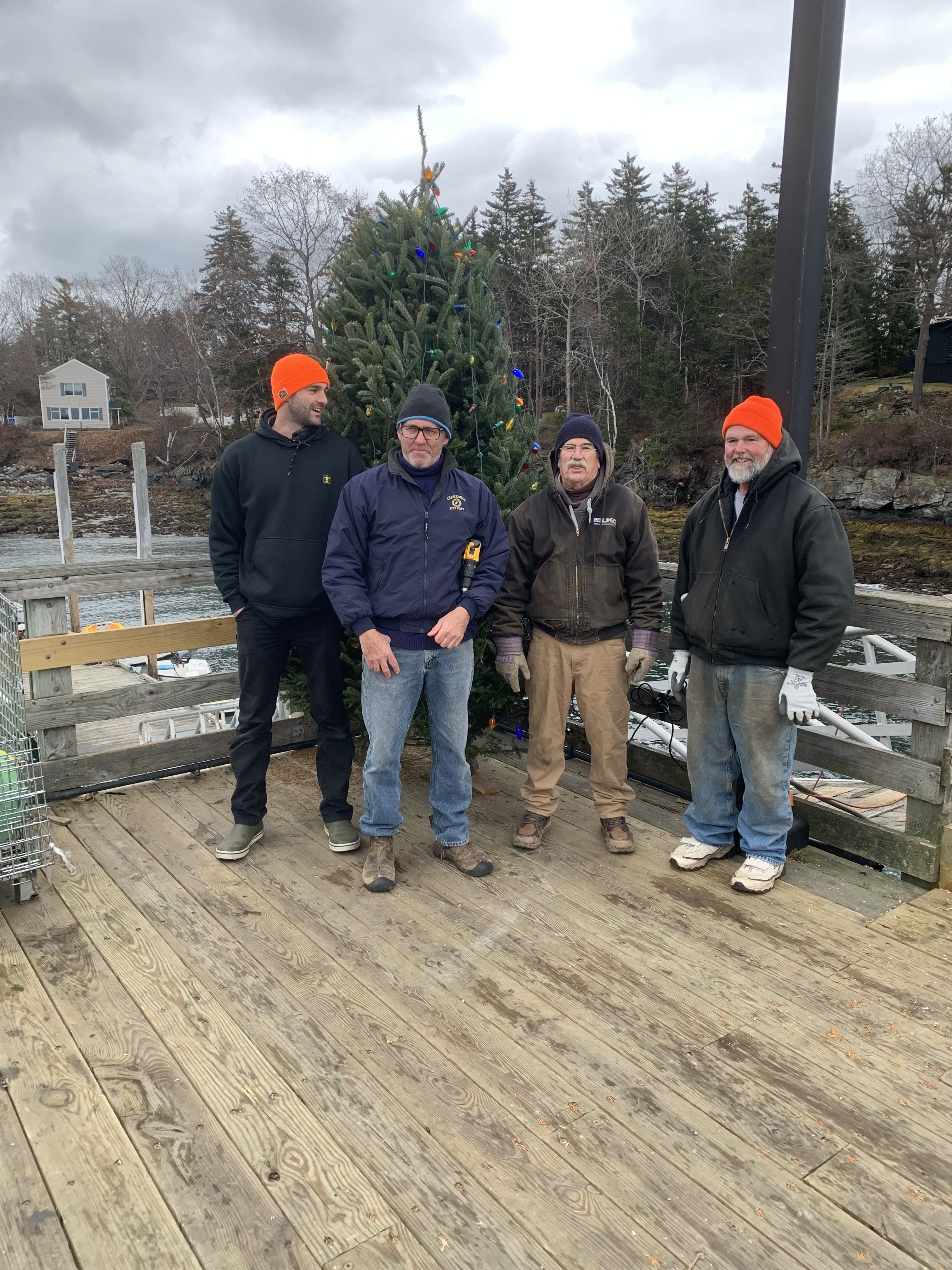 December 1, 2025 - photo - by Doug Ross of the fireman setting up the trees at the wharfs! Thank you so much. Click here for another of them at the Stone Wharf.