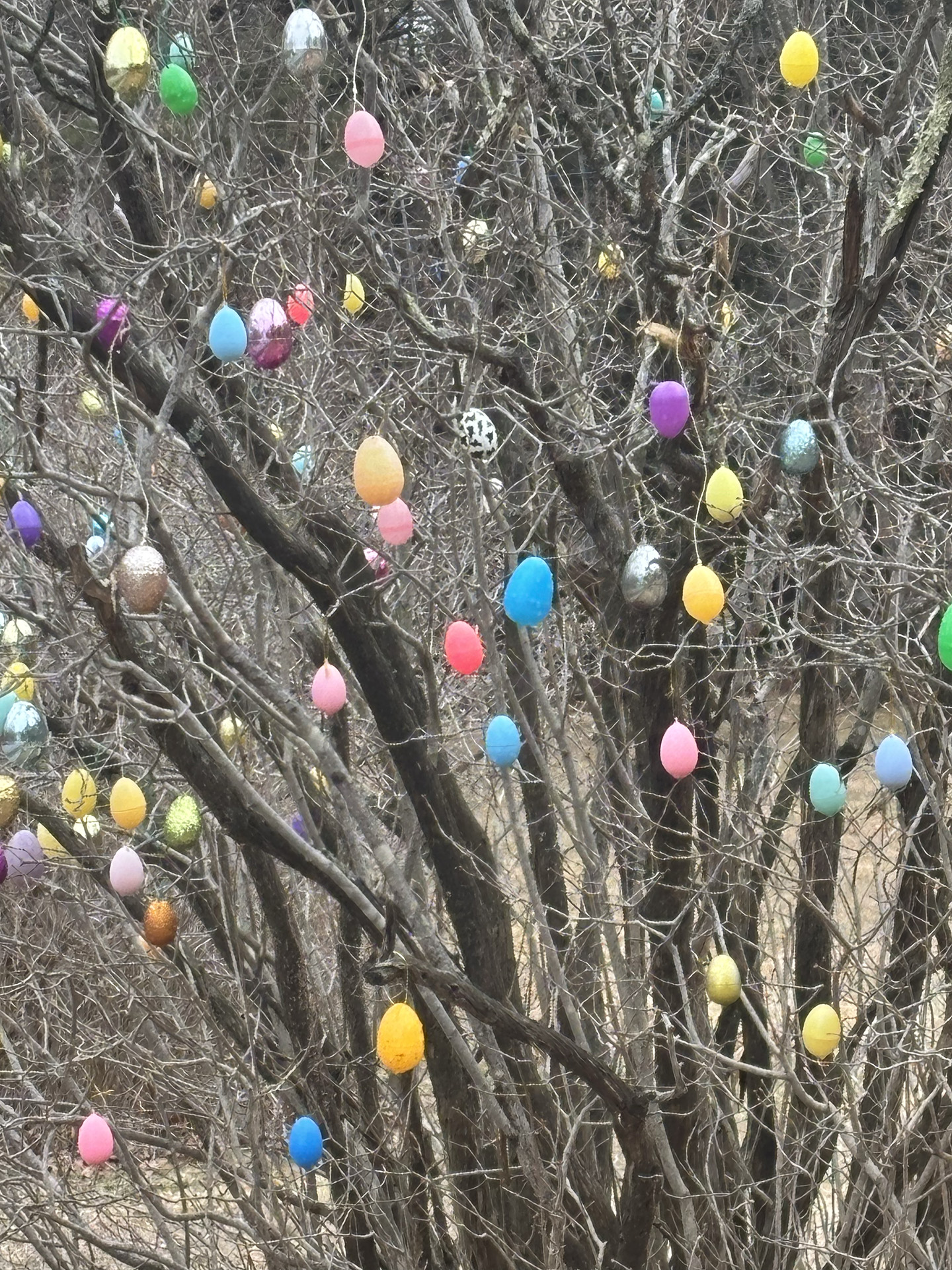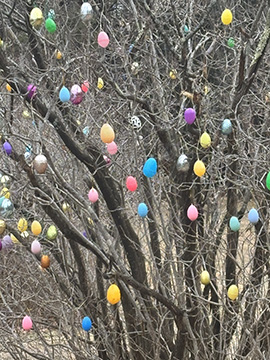 photo - You know it is Easter when the eggs suddenly appear on the White/Maine's front lawn. (Thank you Evin Erder for the photo)