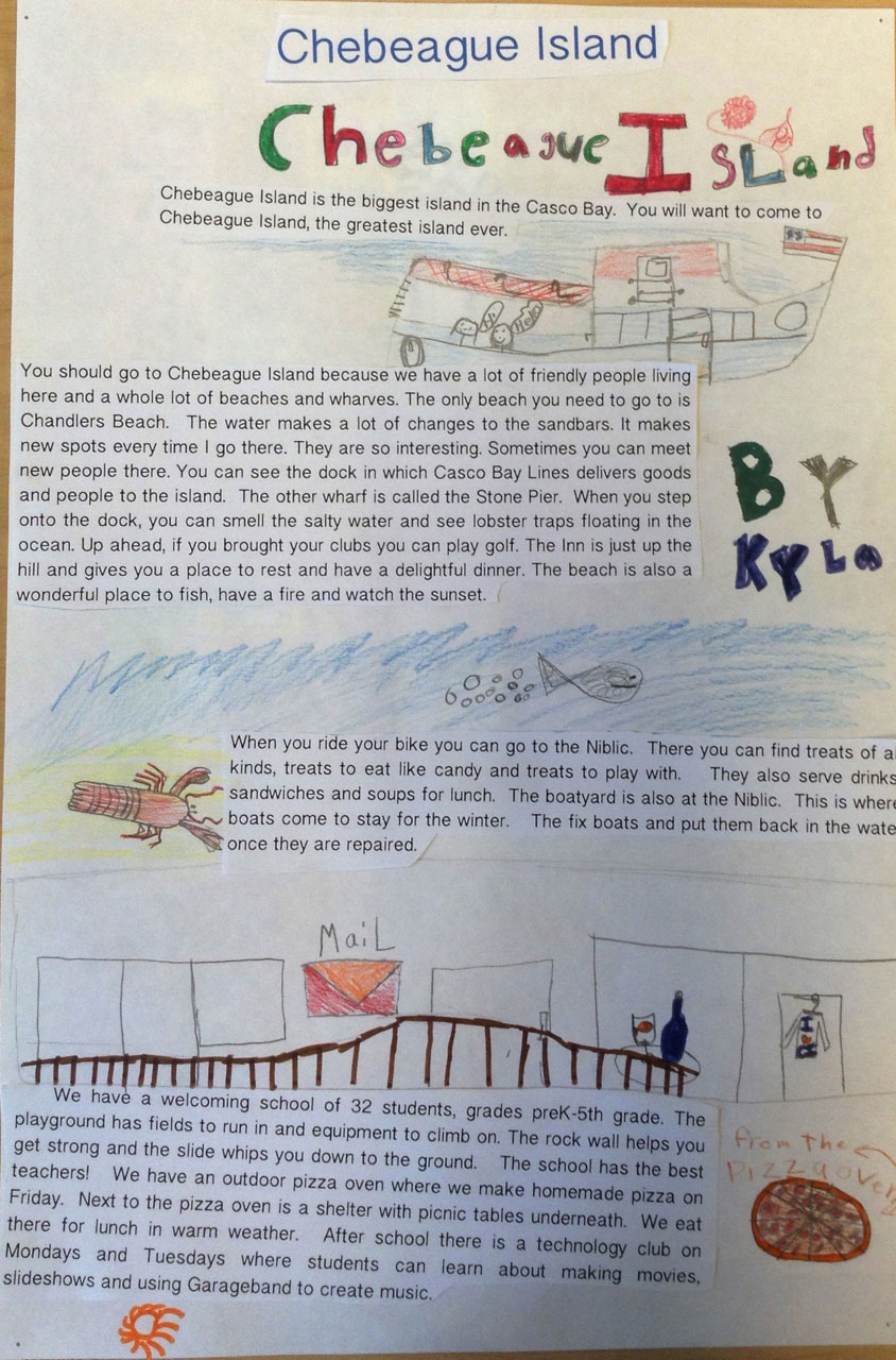 Why should you visit or live on Chebeague assignment. A persuasive writing project by Mrs. Westra's 3rd - 5th grade class. 2016