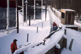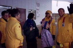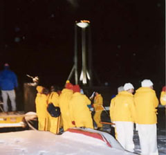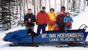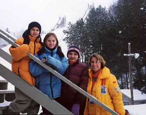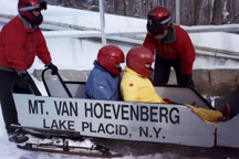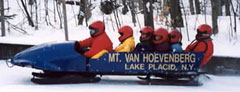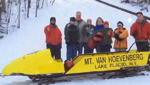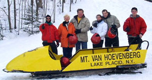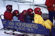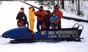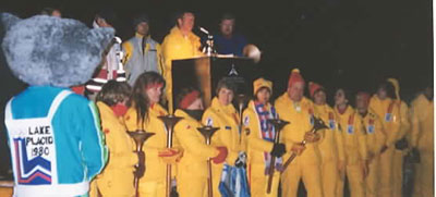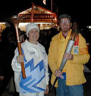 2:30 and 3:30 - Group splits into two groups going to the 2002 Olympic Flame reception at Mt Hoevenberg Bobsled and Intervale Ski Jump Lodge. The flame will take a run down the bobsled and then a jumper will take the flame down the ski jump. Two of our Torchbearers, Chris Owens and Sandee Norris had the honor of running with the 2002 flame in the relay.