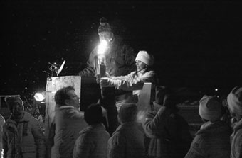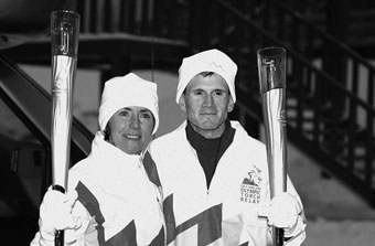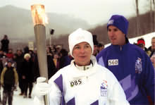 ![]() Jim Rogers had the honor of carrying the flame up the chair lift near the top of the jump. |