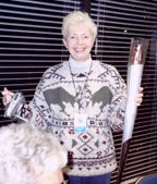 ![]() Dot Helling with the Berlin Torch which is what her father carried in the 1936 Torch relay! |